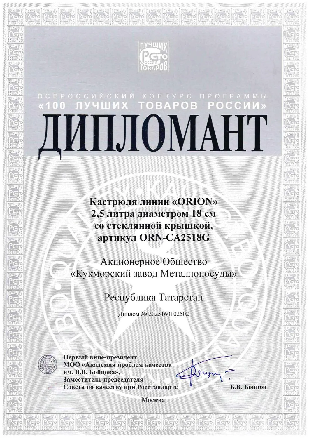 2022 Сертификат Садж стальной