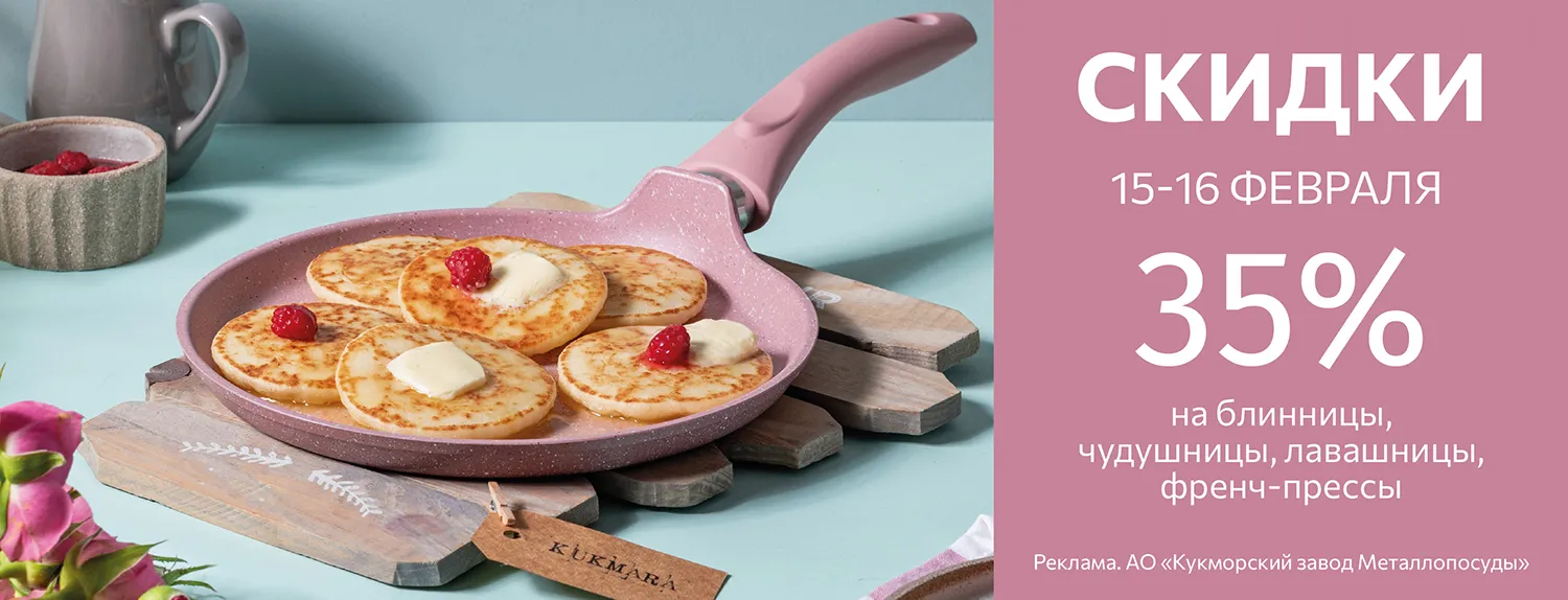 - 35% на блинницы, чудушницы, лавашницы, френч-прессы